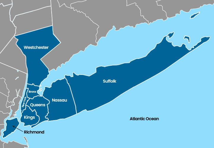 Jani‑King of New York services many customers throughout theBronx, Kings, Naussau, New York, Queens, Richmond, Suffolk & Westchester Counties.